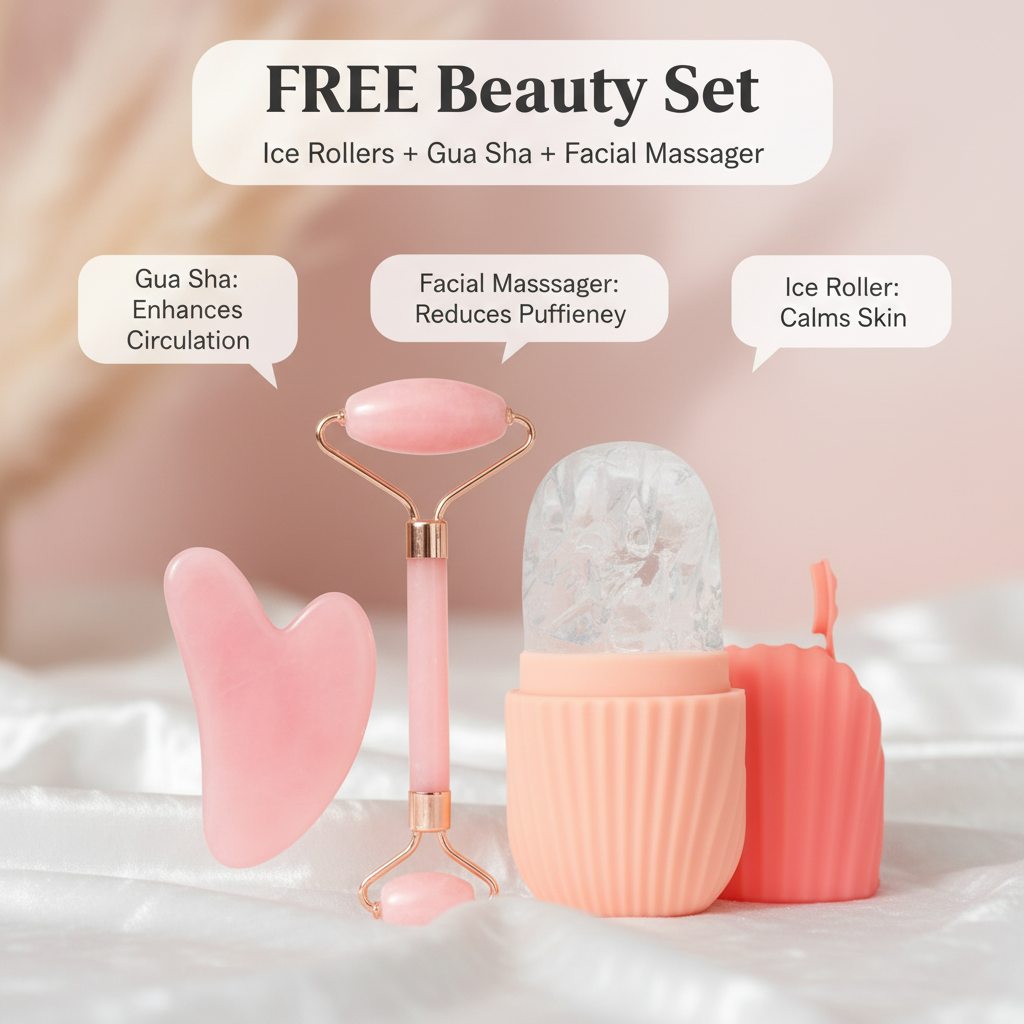 Included gift 🎁: Ice Roller + Gua Sha + Facial Roller