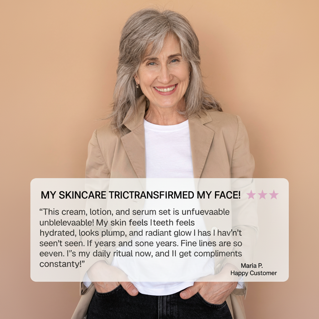 I started using the serum, lotion, and cream pack, and within days my skin looked firmer, brighter, and smoother. My fine lines almost vanished. I can’t live without this pack now